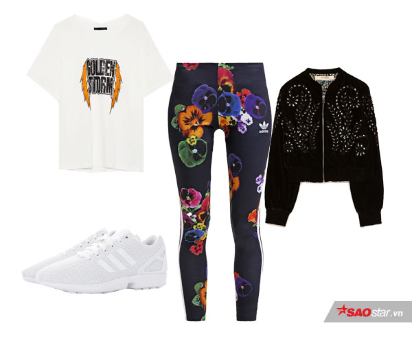 Đối với những cô nàng mê mệt vẻ năng động và trẻ trung thì style sporty hòa phối cùng các item nổi bật như quần legging in hoa, giày sneaker hay áo bomber cũng trở thành một lựa chọn vô cùng hoàn hảo.