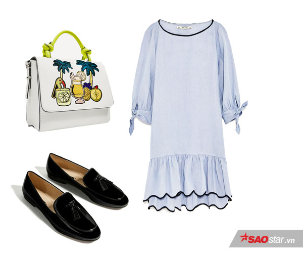 Nàng mẫu Thùy Dương vô cùng nữ tính và thanh lịch khi hòa phối mẫu đầm suông cùng đôi giày loafer đơn giản.