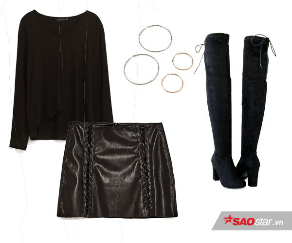 Các nàng cũng có thể lựa chọn chân váy da cùng những chi tiết đan dây để thu hút ánh nhìn mỗi khi bản thân xuất hiện trên các con phố.