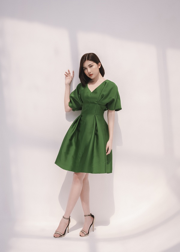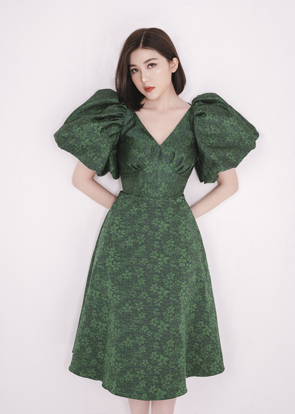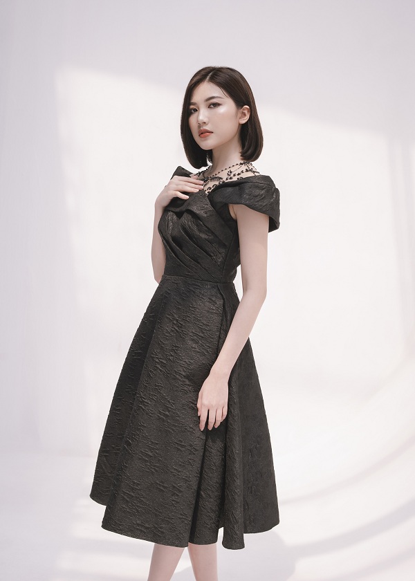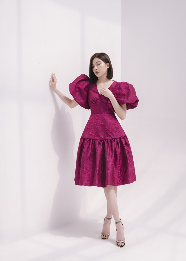 Nàng diễn viên Lương Thanh sẽ gợi ý phái đẹp một số mẫu đầm cocktail nhẹ nhàng, phù hợp cho các quý cô mặc đi dự tiệc hay dạo phố khi ngày 8/3 cận kề. Bộ sưu tập của NTK Hà Duy được lấy ý tưởng từ những bông hoa tulip với điểm nhấn là phần tay chuông. Xu hướng này từng tạo trend hot vào mùa thu năm 2016 và đến nay vẫn được nhiều nhà mốt thế giới ưa chuộng.