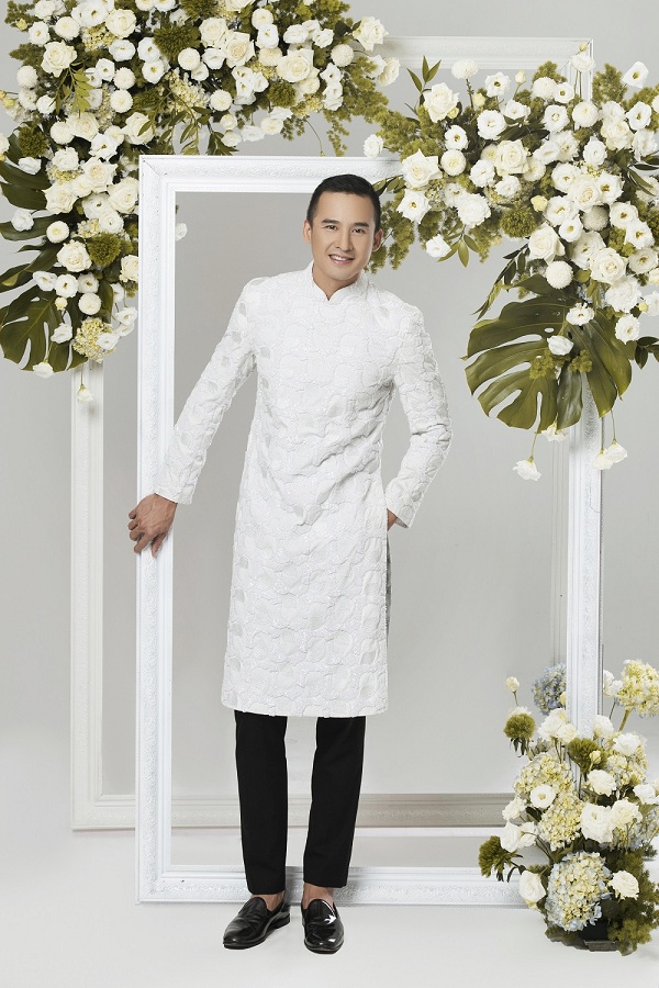 Lương Thế Thành chọn quần tây đi kèm với các mẫu áo dài nam này vừa giữ được nét truyền thông tô điểm thêm nét hiện đại trong trang phục