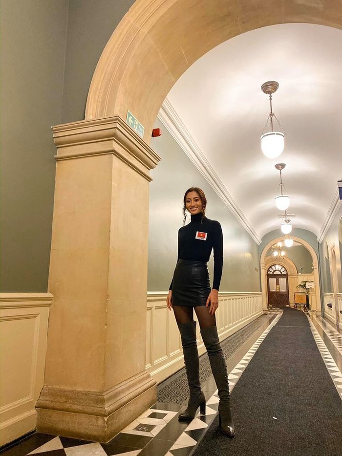 Với những hoạt động thường ngày trong khuôn khổ cuộc thi, Lương Thùy linh ưu ái đến những trang phục trẻ trung, nữ tính. Với bộ cánh này, người đẹp khoe được tối đa lợi thế đôi chân thon dài chuẩn siêu mẫu của mình.