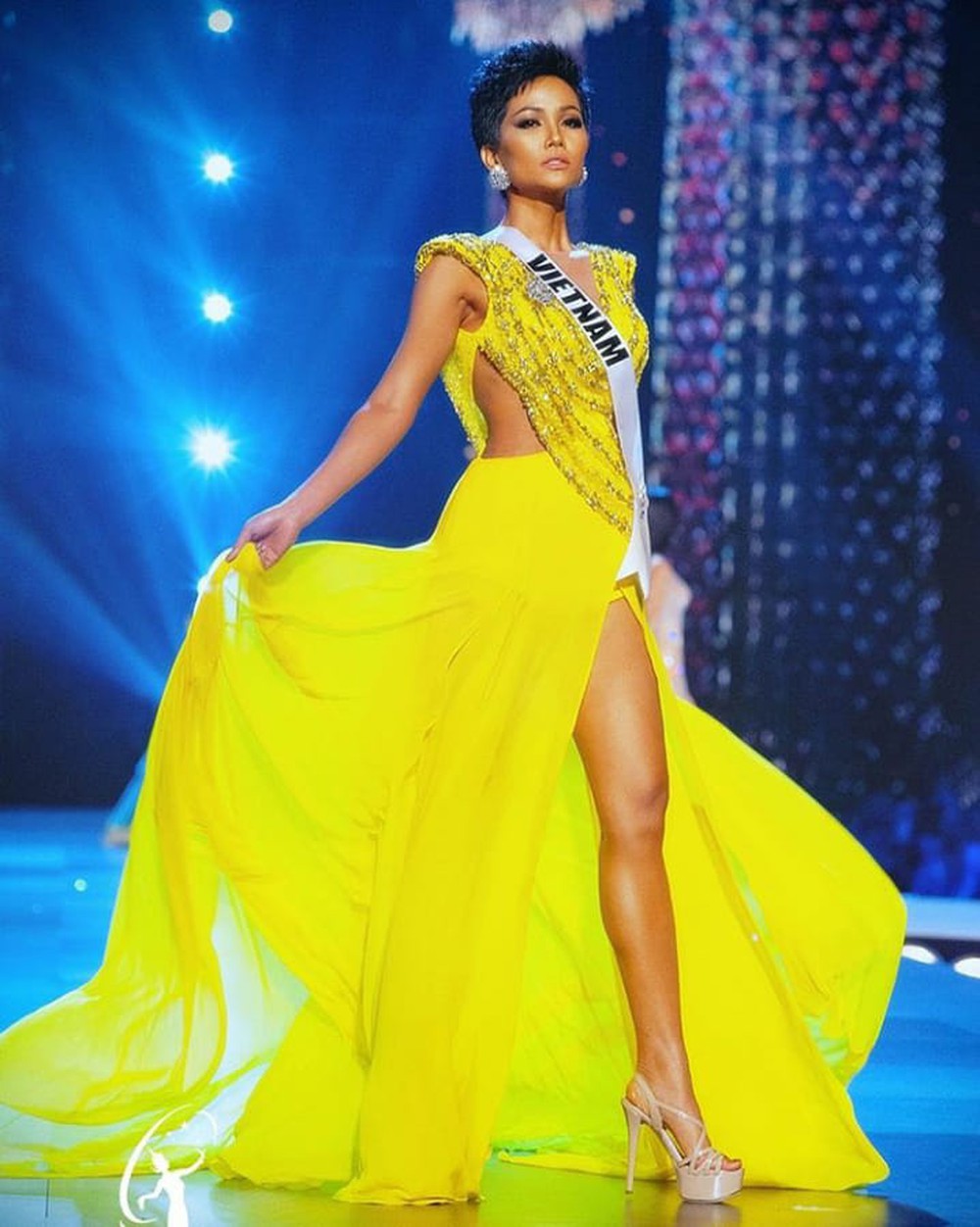 Nhắc đến váy vàng, chắc chắn không thể bỏ qua H'Hen Niê cùng bộ cánh tạo nên màn trình diễn đi vào huyền thoại.