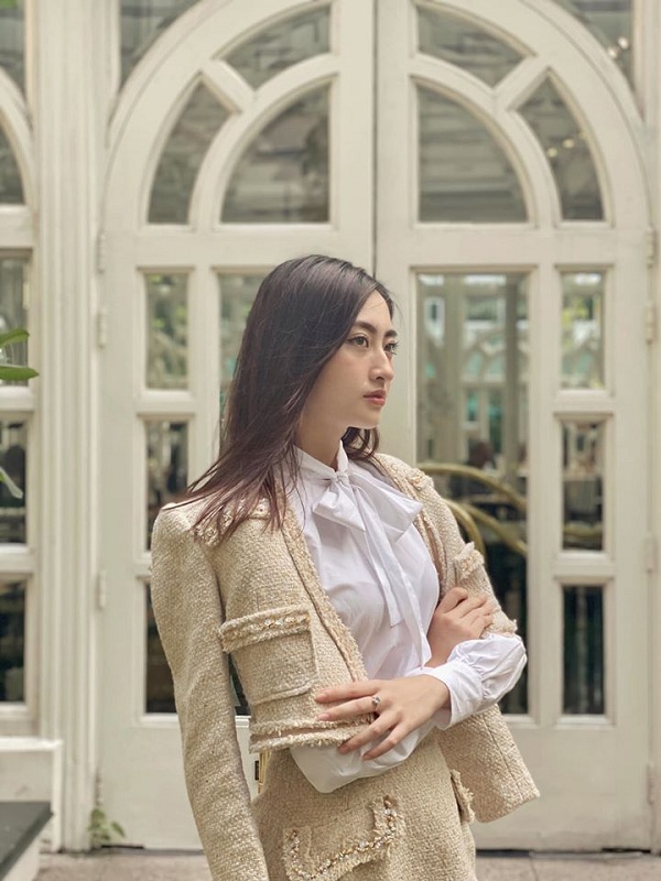 Style váy âu phục đậm chất quý cô cổ điển của người đẹp Lương Thùy Linh trong một buổi trà chiều