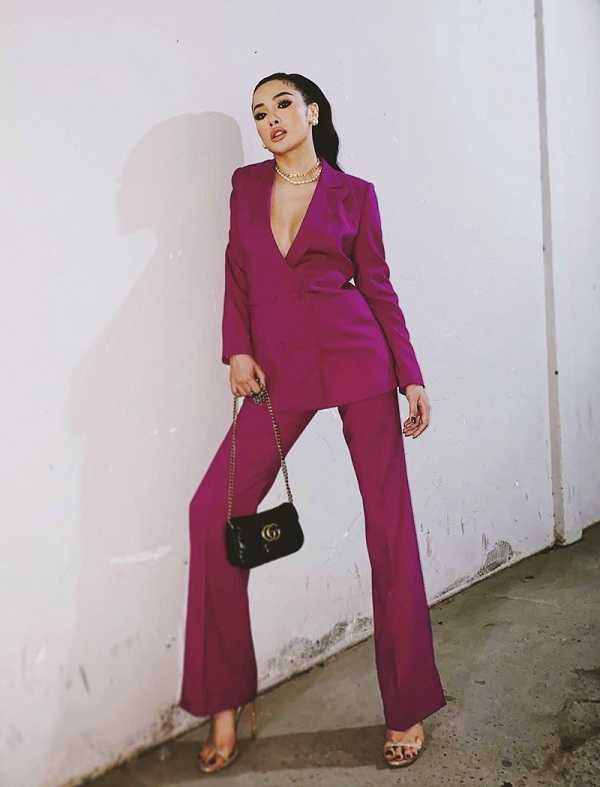 Yaya Trương Nhi lựa chọn trang phục suit màu hồng tím không nội y xẻ vòng một quyến rũ trong bộ ảnh streetstyle của mình
