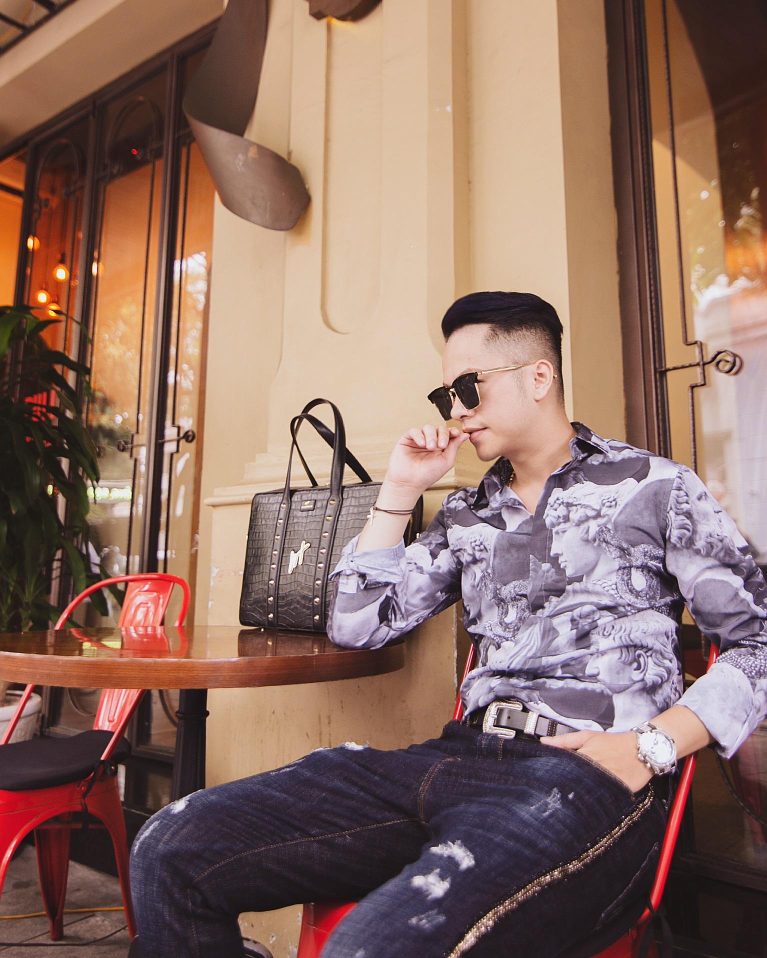 (Cười) Lý do đầu tiên cũng chỉ là tôi đang rất cần một chiếc clutch. Cảm hứng để tôi có thể thiết kế nên sản phẩm độc đáo này đến từ chiếc găng tay của các võ sĩ boxing. Chính vì thế, chiếc clutch này có form khỏe khoắn, tối giản và có phần xỏ tay thửa từ da cá sấu vô cùng tiện lợi. Chi tiết phần xỏ tay này cũng vô cùng quan trọng. Tôi không muốn người sử dụng phải cầm nắm song vẫn có thể giữ được clutch trên tay, tránh bị giật đồ.