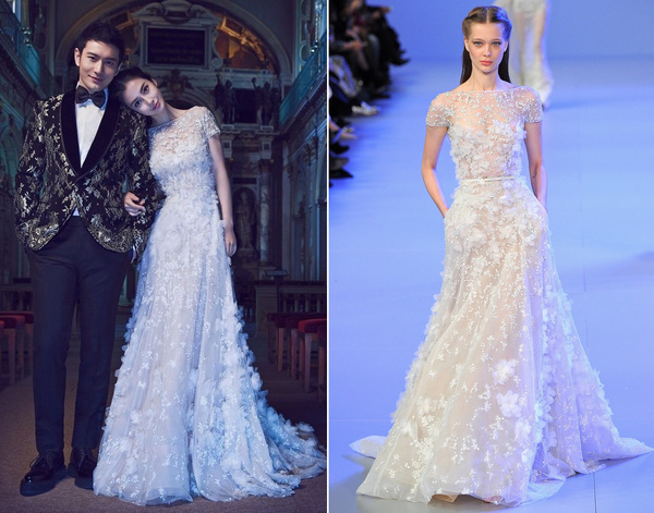 Angelababy từng chọn thiết kế của Elie Saab trong bộ ảnh chụp hình cưới của mình vào năm 2015