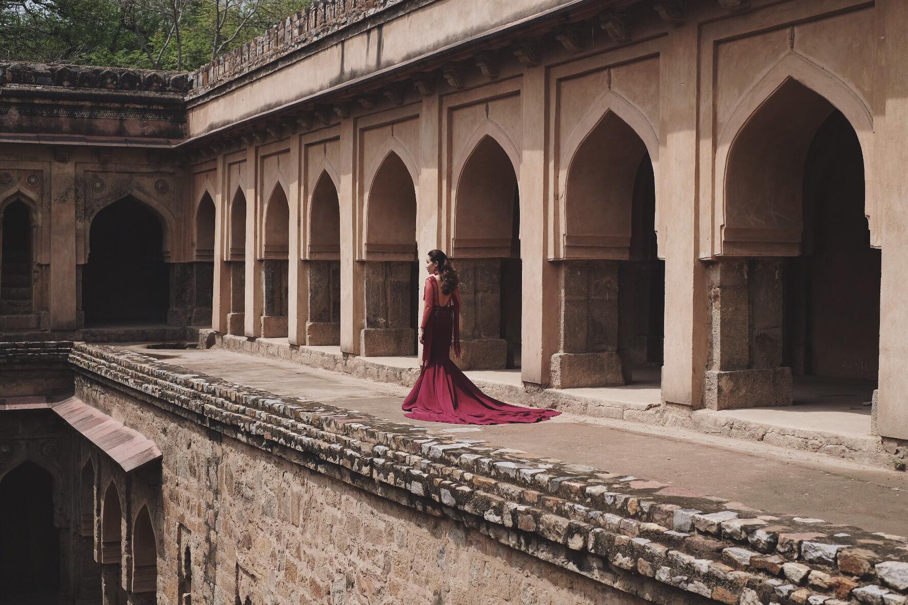 Góc máy hoành tráng được dành cho bộ đầm đỏ thướt tha.