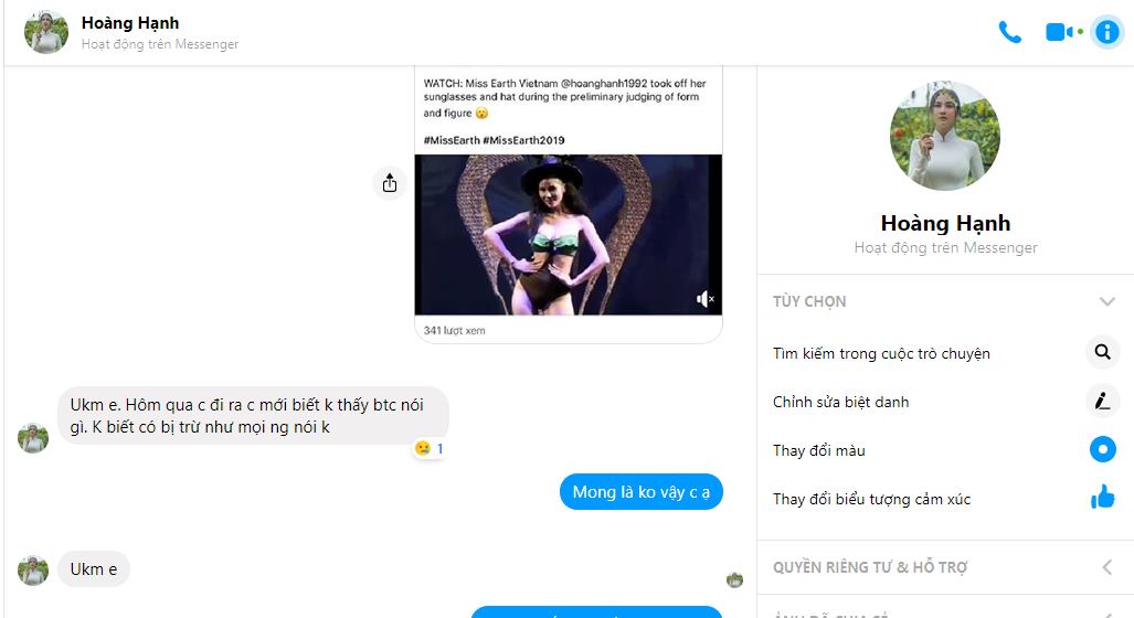Trước vụ việc khó hiểu này, về phía Hoàng Hạnh cô cũng đã có phản hồi trước fan hâm mộ. Theo đó cô giải thích Ban tổ chức không phổ biến gì nên cô không biết luật thi và hy vọng sẽ không bị trừ điểm.