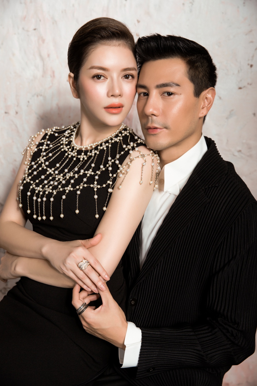 Cả hai hòa quyện trong concept dạ hội dành cho cặp đôi, trong đó Lý Nhã Kỳ tỏa sáng bằng những mẫu trang sức nhỏ tinh tế của de Grisogono, Paolo Piovan, Crivelli Gioielli, Staurino, mix match khéo léo với tổng thể trang phục.
