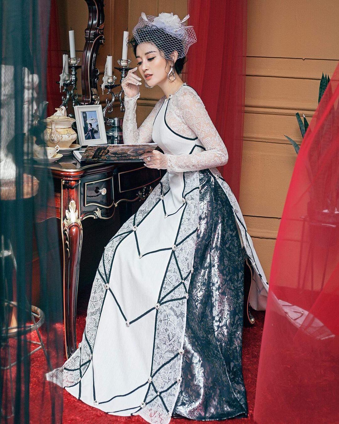 Hình ảnh nàng Á hậu diện áo dài voan lưới với thần thái sang trọng, đài các như những quý cô. Vốn yêu thích phụ kiện đội đầu nên Huyền My “tậu” ngay cho mình một chiếc mũ lưới của cô dâu.