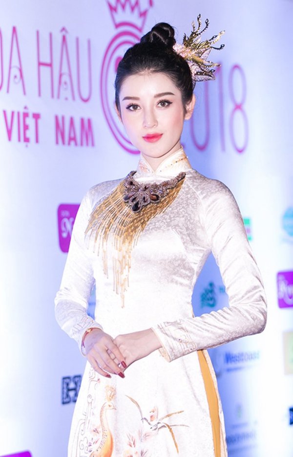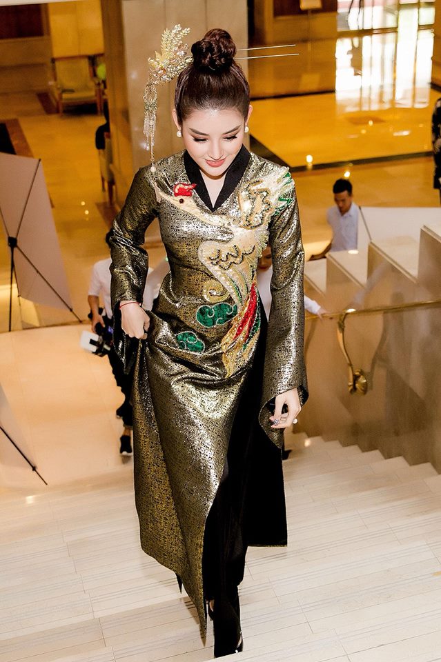 Trong buổi họp báo trước vòng chung khảo phía Nam của Hoa hậu Việt Nam 2018, Á hậu Huyền My tiếp tục ham hố “chặt chém” bằng bộ trang phục rườm rà, phục sức cầu kỳ.