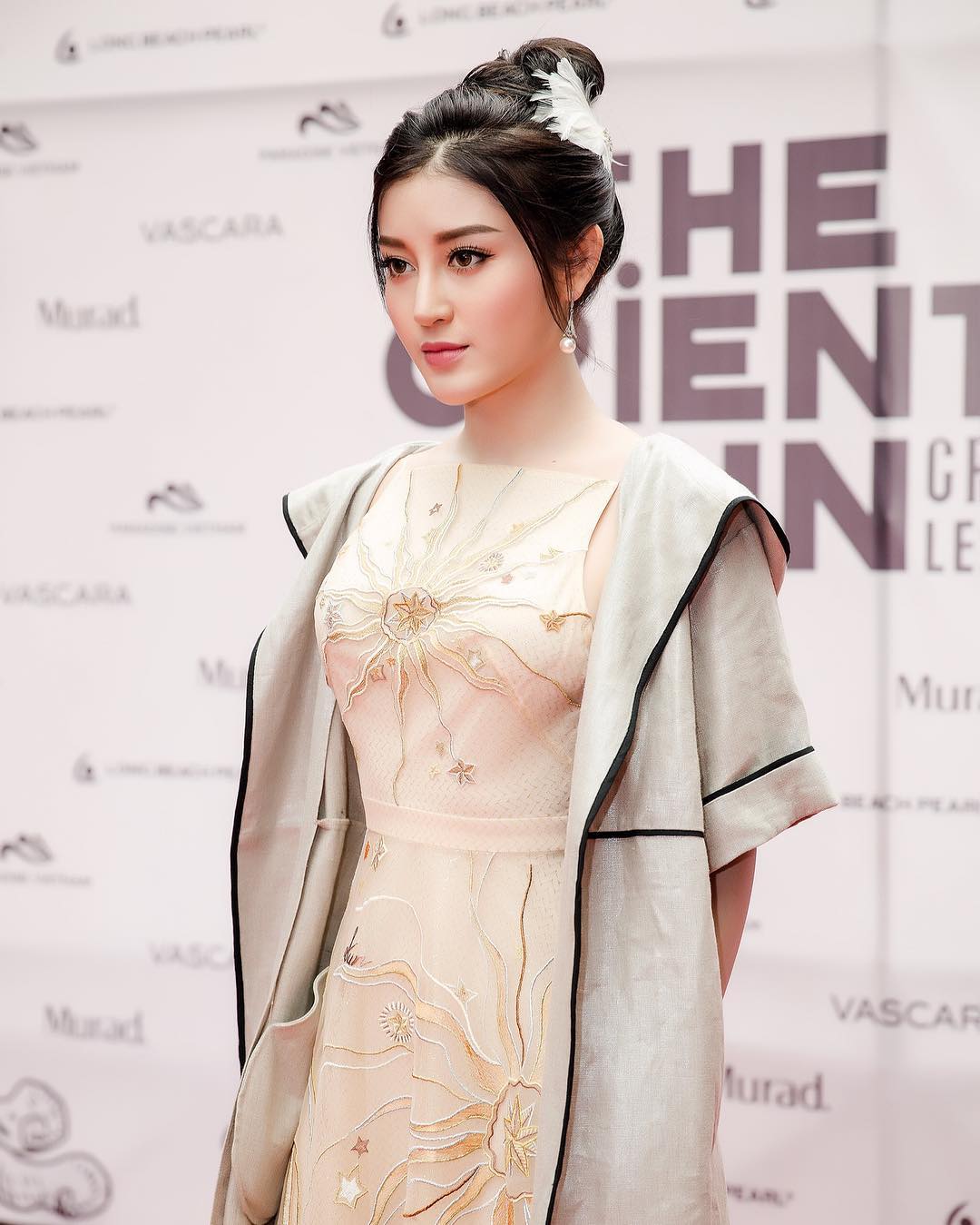 Cũng trong sự kiện của Hoa hậu Việt Nam diễn ra hồi tháng 3, Huyền My tiếp tục sử dụng trâm cài tóc.