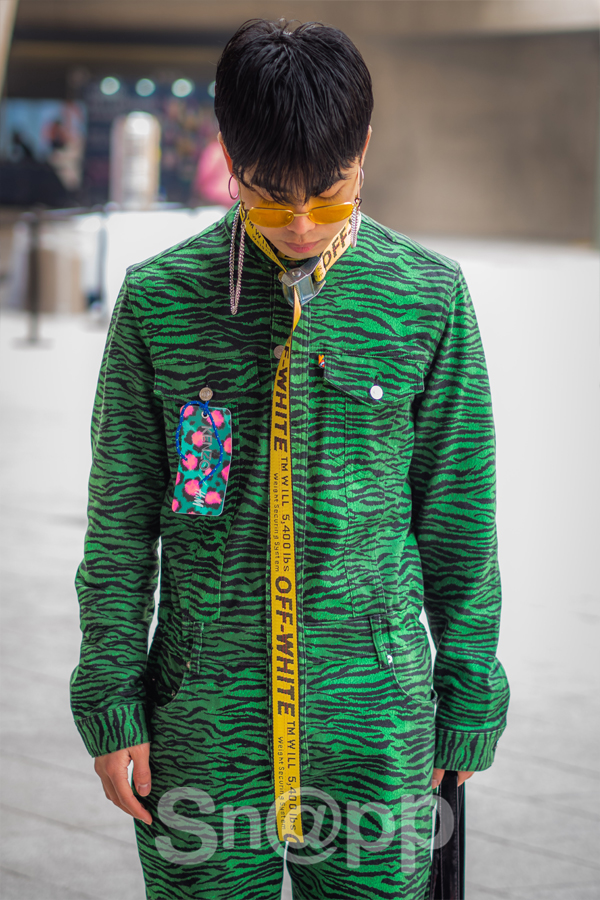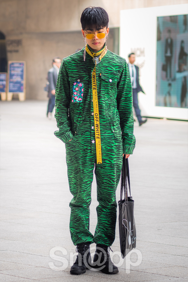 Anh chàng này mặc set đồ liền thân họa tiết da beo vô cùng nổi bật của thương hiệu Kenzo.