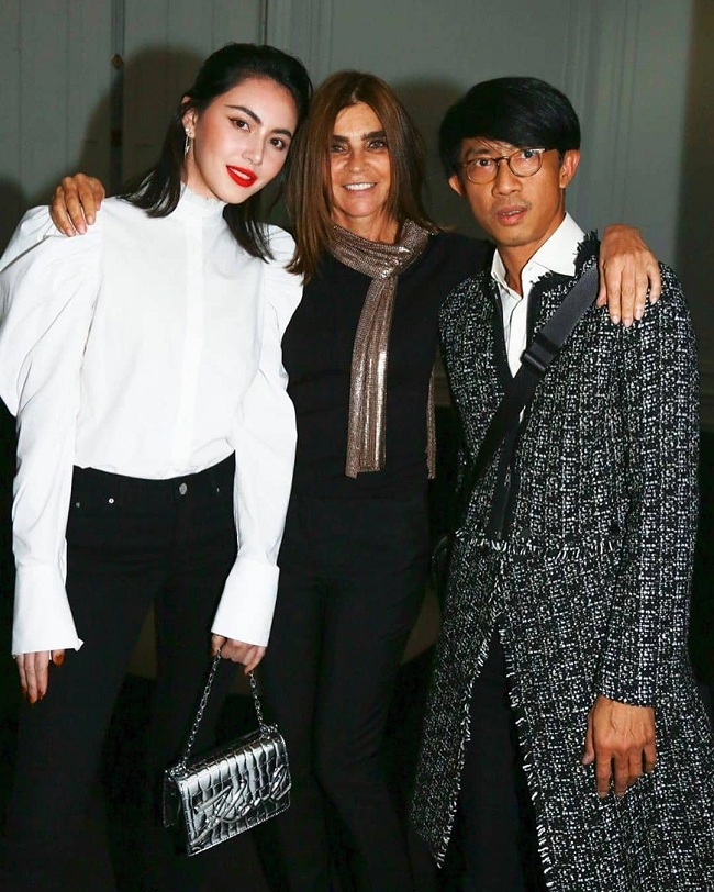 Mai Davika chụp hình bên cạnh Carine Roitfeld, trước đây là cựu tổng biên tập của tạp chí Vogue Pháp, sau này được bổ nhiệm làm giám đốc cố vấn cho thương hiệu Karl Lagerfeld