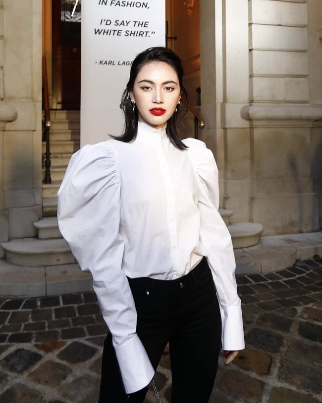 Ma nữ Thái mặc nguyên set đồ đến từ thương hiệu Karl Lagerfeld cùng tông makeup sắc sảo