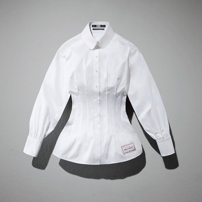 Một trong những thiết kế áo sơ mi trắng của thương hiệu Karl Lagerfeld tại buổi triển lãm