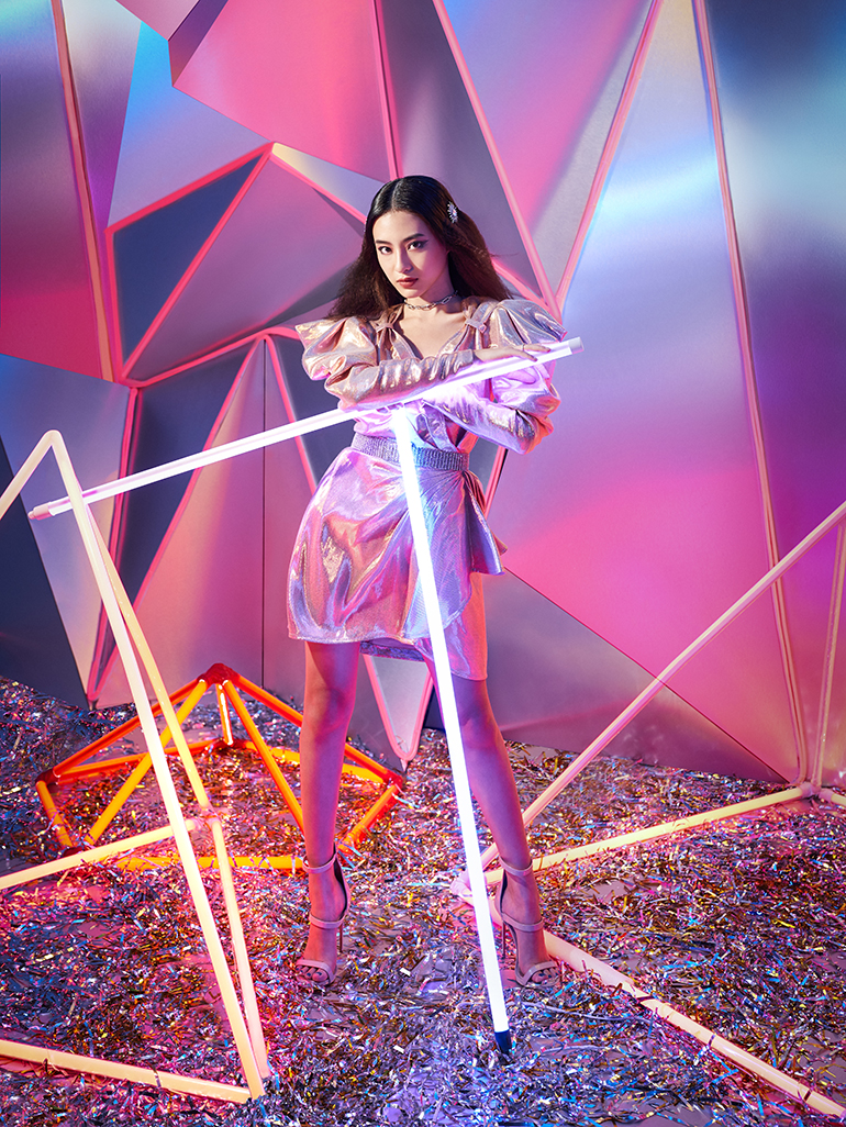 Mới đây, siêu mẫu sinh năm 1993 đã cùng top 5 bao gồm Diễm Quỳnh, Dương Minh Ngọc, Hồng Xuân, Lê Chi, Na Tây xuất hiện trong bộ hình mang hơi hướng tương lai với concept đèn neon cùng các khối crystal tạo một cảm giác mạnh mẽ, gai góc.