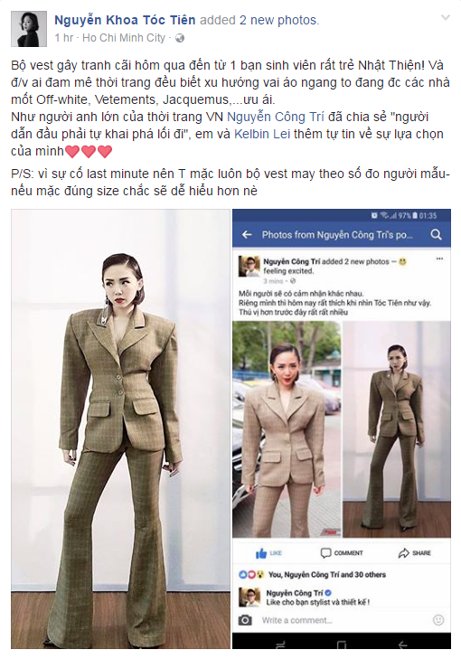 Nhà thiết kế Công Trí bất ngờ cho Tóc Tiên và stylist Kelbin Lei “một like”.