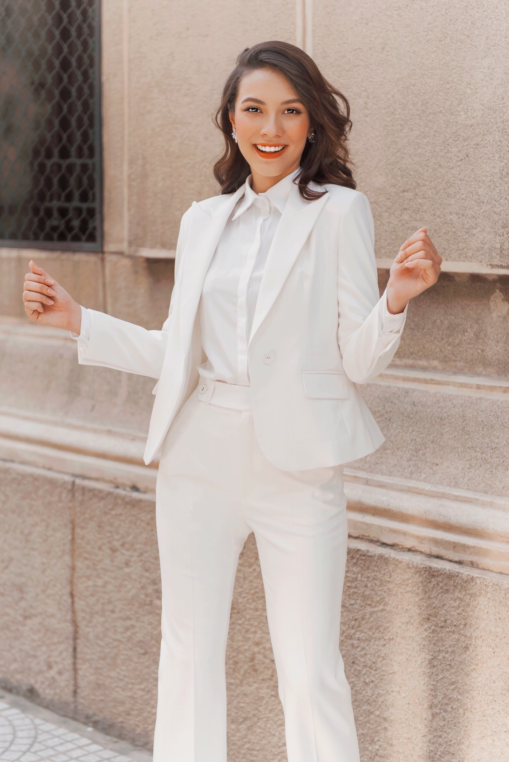 Suit trắng với phom dáng tinh giản những vô cùng sang trọng