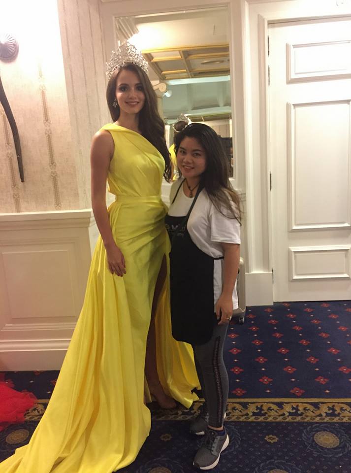 Đương kim Miss Tourism Ambassador 2017 trông khá già dặn khi “vạ tay” chọn phải thiết kế cũ của Đỗ Mỹ Linh. Chất liệu vải nhăn nheo khiến hình ảnh cô không được chỉn chu, kém sang.