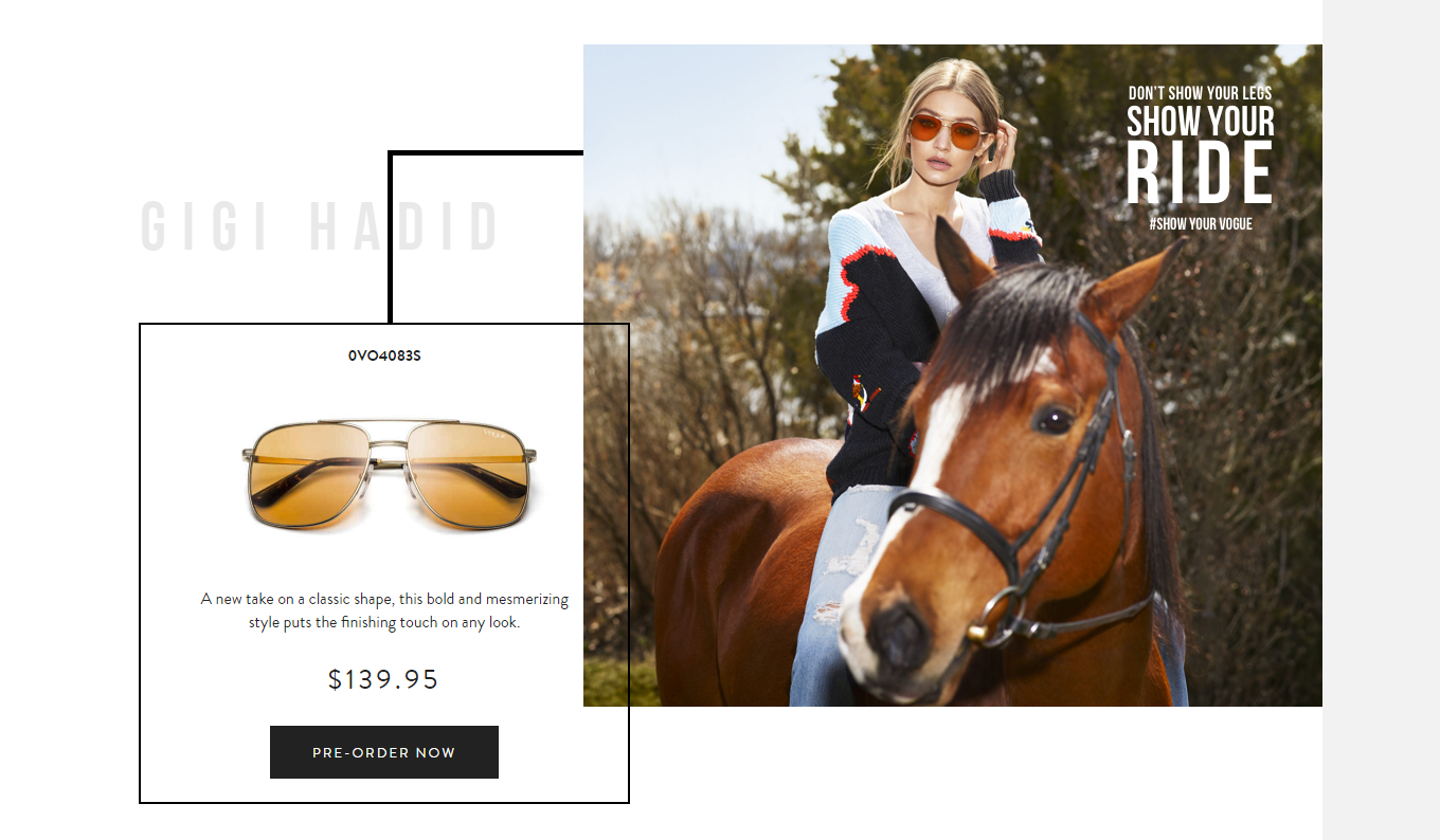 Với hashtags Show Your Ride, bộ sưu tập mới của Gigi gồm 6 gam màu trên 6 mẫu kính đa dạng. Vận dụng tất cả “ám ảnh” về kính vốn có, thiết kế từ Gigi khiến giới mộ điệu không nỡ buông bỏ cái nào, hay là ôm luôn…