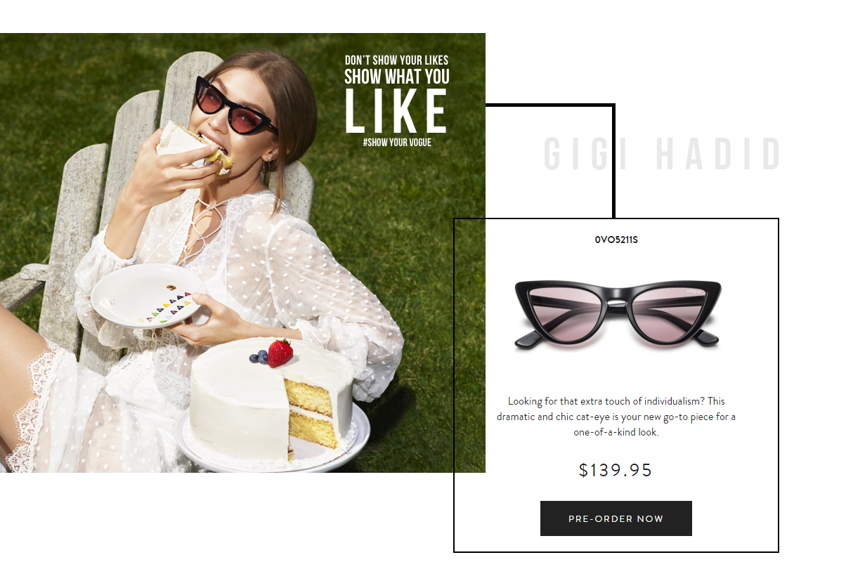 Hầu hết thiết kế của Gigi Hadid đều giản đơn hết mức, nhưng với cái nhìn dành cho người đẹp trong khuôn kính mắt mèo, đó là sự đánh bóng bản thân vô cùng tinh tế.