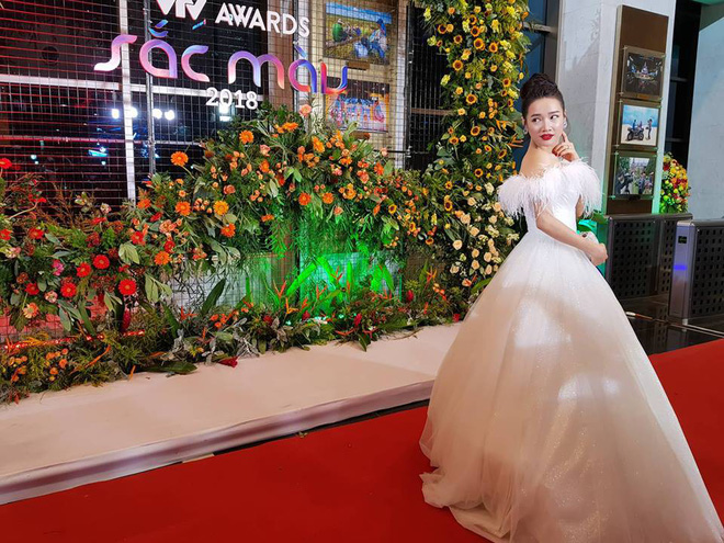 Dù bao tin đồn bầu bí bủa vây, nhưng Nhã Phương trông vẫn vô cùng rạng rỡ với vòng hai gọn gàng trong chiếc váy dạ hội màu trắng.