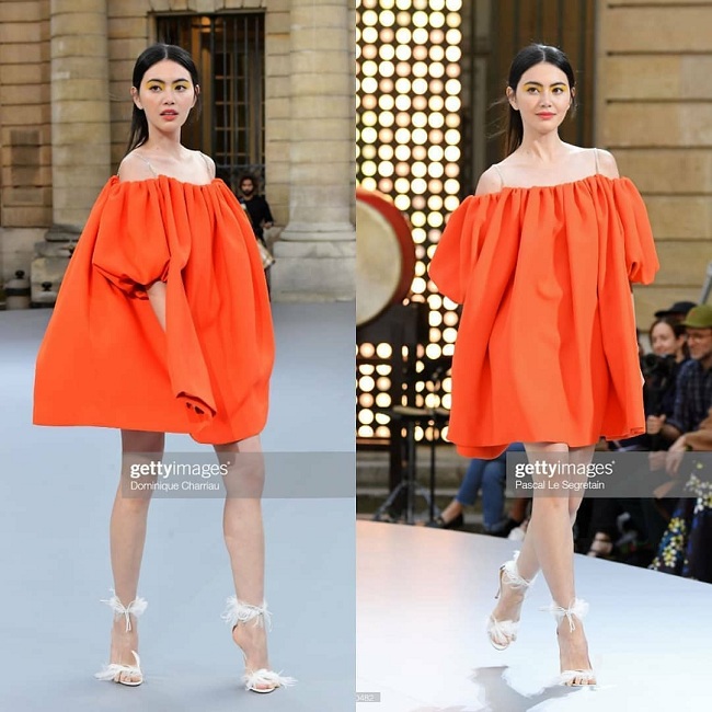 Mỹ nhân xứ Thái không những vừa làm gương mặt đại diện cho hãng mỹ phẩm Pháp ở khu vực Châu Á mà còn được ưu ái mời làm người mẫu trong show