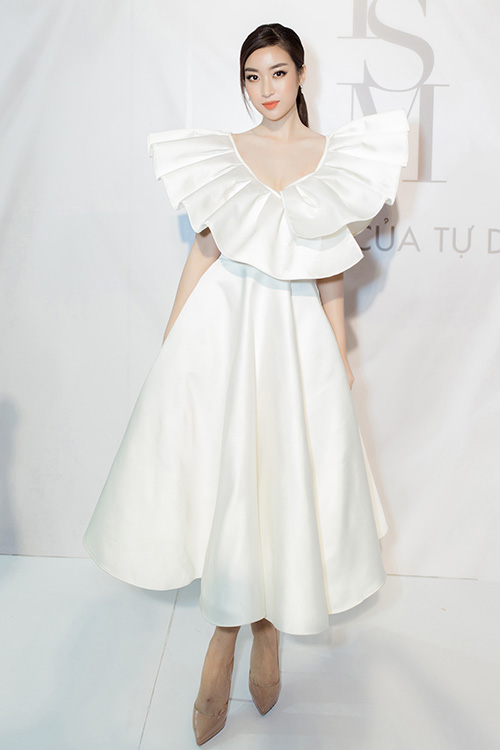 Cựu Hoa hậu Việt Nam 2016 Đỗ Mỹ Linh hóa nàng công chúa kiêu kỳ trong chiếc đầm xòe được nhấn nhá ở phần cổ áo.