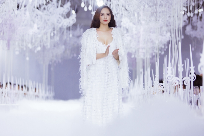 Tại sự kiện cô chọn một thiết kế tông màu trắng, và lần này chi tiết khoét ngực đã được tiết chế giúp vẻ ngoài của Mai Phương Thúy được lòng số đông.
