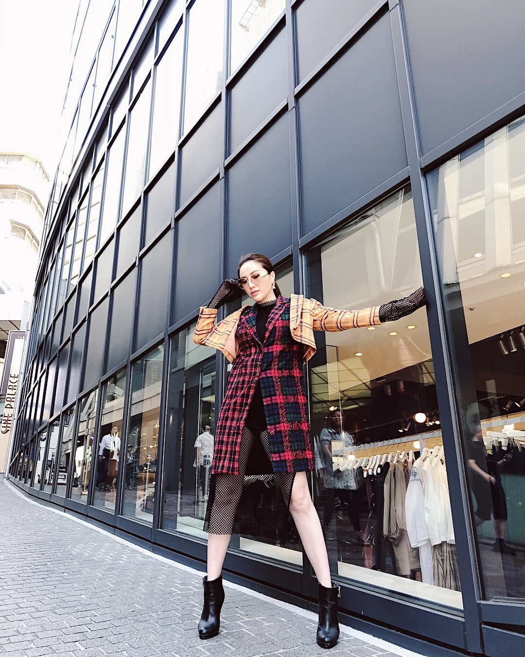 Set đồ ca rô đỏ, beige đem lại cho Bảo Thy vẻ ngoài cá tính. Dạo gần đây, nữ ca sĩ đã dần thay đổi hình tượng kẹo ngọt trước đây, trở nên thời thượng, phong cách hơn.