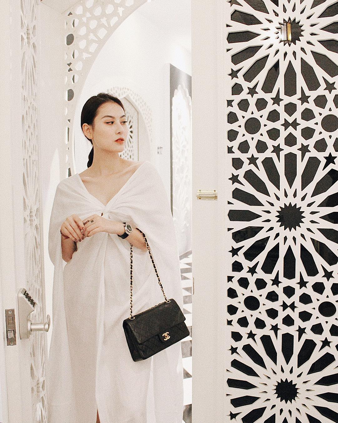 Hà Lade thu hút mọi ánh nhìn với bộ váy trắng nền nã cùng túi Chanel đen đơn giản làm điểm nhấn.