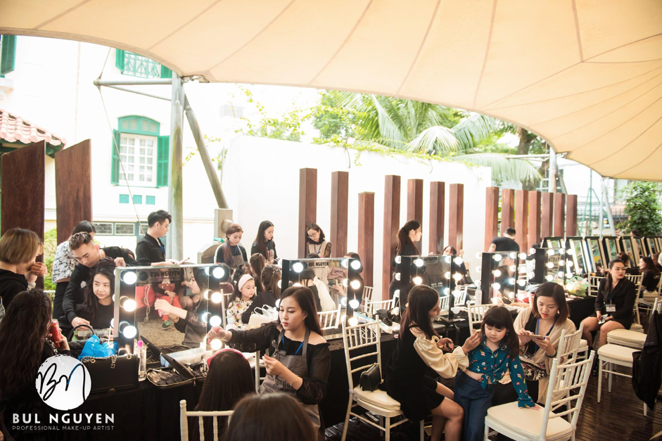 Ngày diễn ra show, hơn 20 chuyên viên makeup và làm tóc của Bul Nguyễn Make Up Store bỗng dưng trở thành “bảo mẫu bất đắc dĩ” khi các bé đều đang ở lứa tuổi từ 3 đến 8 tuổi, rất hiếu động và sự tò mò rất cao. Trong lúc makeup và làm tóc cho các bé, chúng tôi phải đảm bảo làm một cách nhẹ nhàng, tỉ mỉ vì sợ các bé sẽ đau, đồng thời phải cử người nói chuyện và giải thích rất nhiều câu hỏi không tên để đảm bảo các bé ngồi yên makeup.