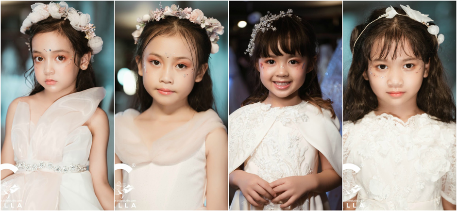 Bul cùng các chuyên viên trong team của mình đã vẽ và test thử rất nhiều layout để đảm bảo tìm ra layout hoàn hảo nhất. Cuối cùng layout make up Bul lựa chọn là tone đào ngọt, với lối makeup phác họa được nét căng mọng, cộng với làn da trắng hồng bóng nước tạo hiệu ứng khuyếch tán ánh sáng. Điểm nhấn cho tone này chính là những viên đá và nhũ sáng được sắp xếp “tự nhiên nhưng có chủ ý“ trên gương mặt các bé để tăng phần lấp lánh, huyền ảo.