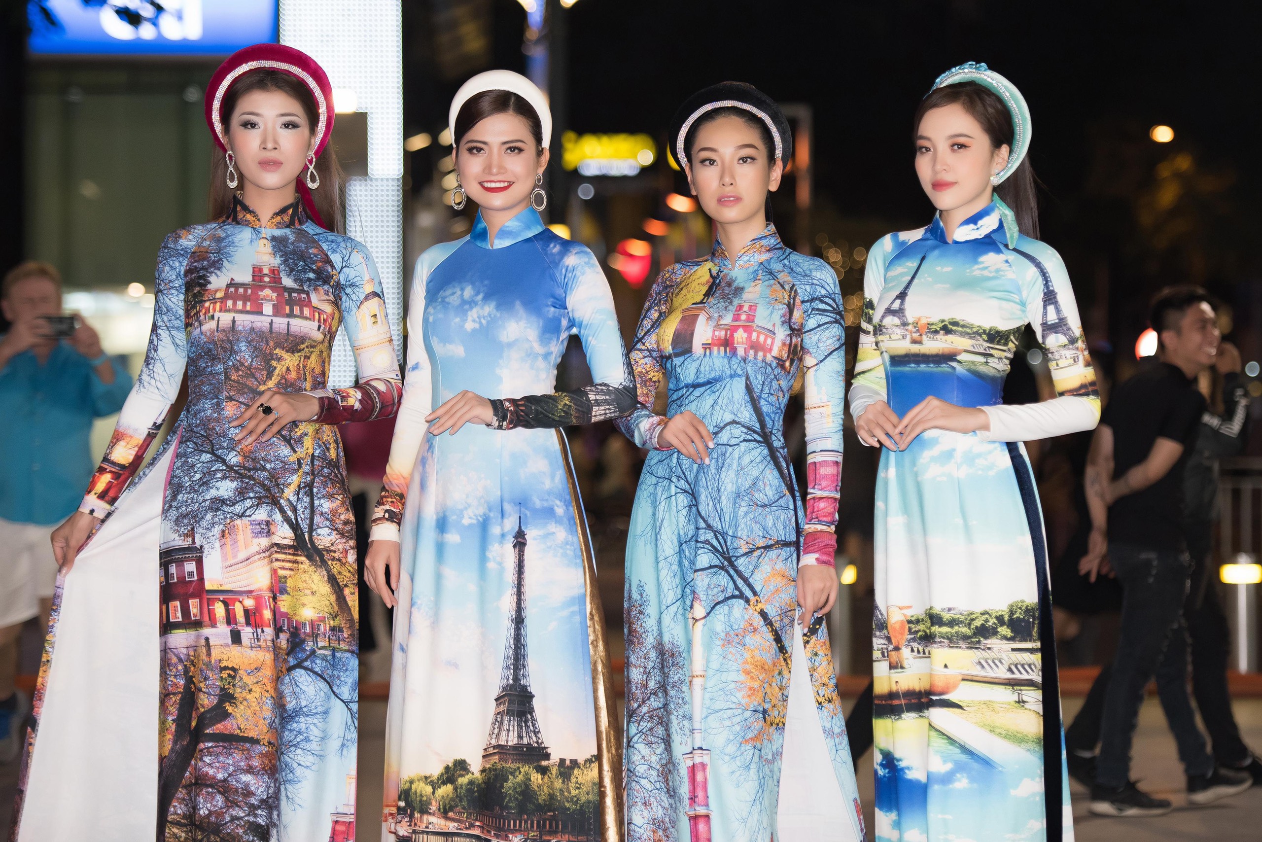 Mới đây, tại khai mạc Lễ hội “Tp. Hồ Chí Minh hội nhập năm 2019” diễn ra trong 3 ngày 29, 30/11 - 1/12/2019, NTK áo dài Nhật Dũng đã mang đến BST duyên dáng và sáng tạo. NTK thể hiện ý tưởng của chương trình rất khéo léo qua họa tiết in/ thêu trên áo cũng như chiếc mấn đội đầu đi kèm. Những họa tiết hoa văn trên áo dài là những kỳ quan và di sản nổi tiếng nhiều quốc gia trên thế giới khiến người ngắm cảm thấy thích thú và mới mẻ.