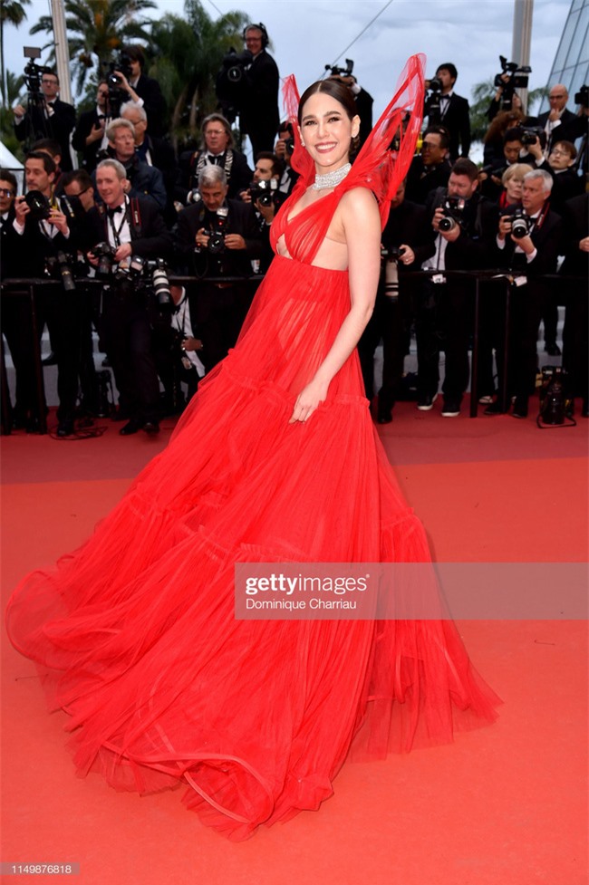 Khác hẳn với ngày hôm qua kín đáo nữ tính ,em gái của Gigi “rực đỏ” trong chiếc váy cắt xẻ táo bạo trong ngày thư 4 ở thảm đỏ Cannes