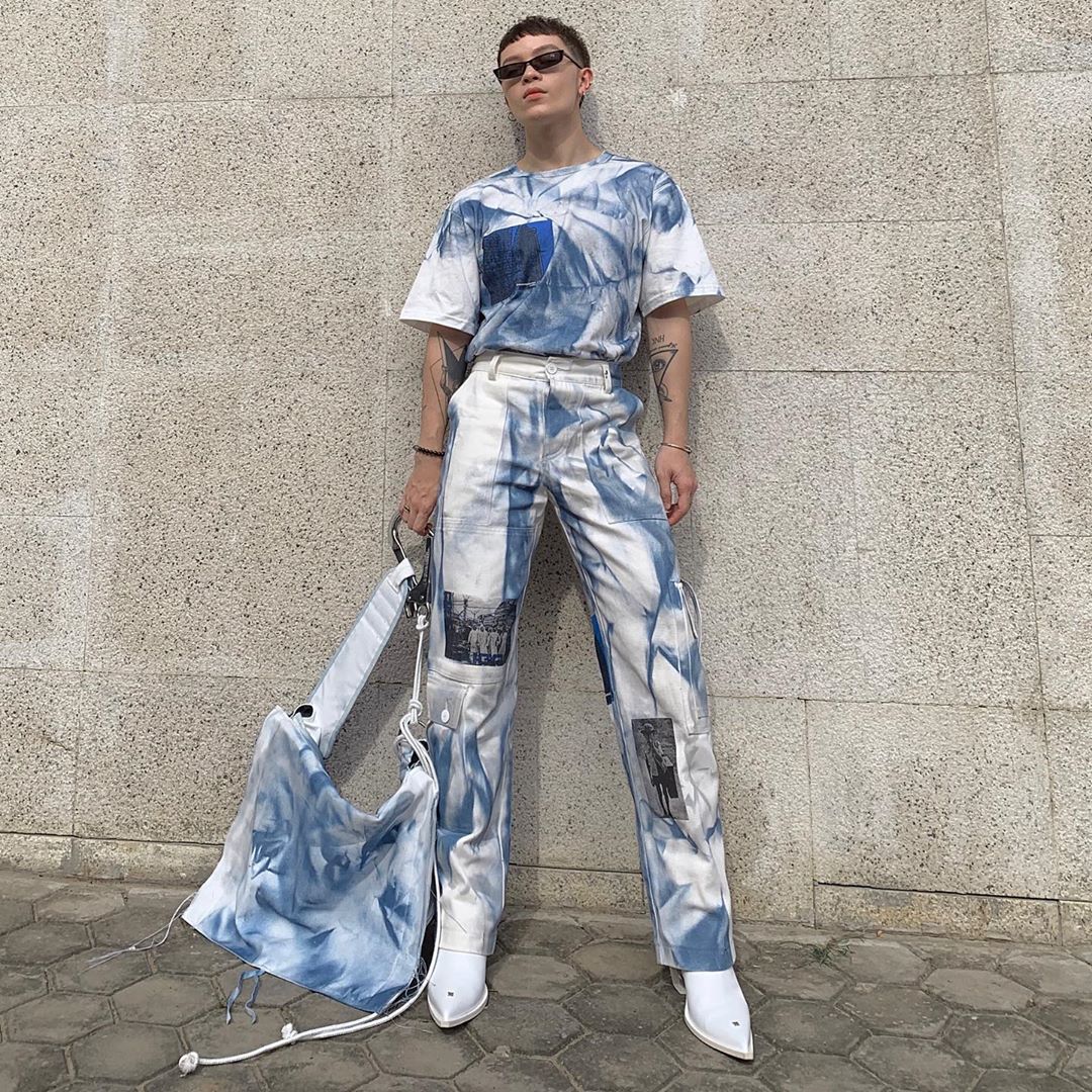 Cùng mê mẩn một chiếc quần wax loang màu, cả Kelbin và Ngọc Trinh đều có cách mặc riêng, tạo được ấn tượng. Nếu “Nữ hoàng nội y” chọn mix cùng croptop trơn trắng khoe vòng eo thon thì chàng stylist lại muốn khoe hết phần họa tiết in loang độc đáo khi chọn diện cả cây trang phục gồm áo lẫn quần.