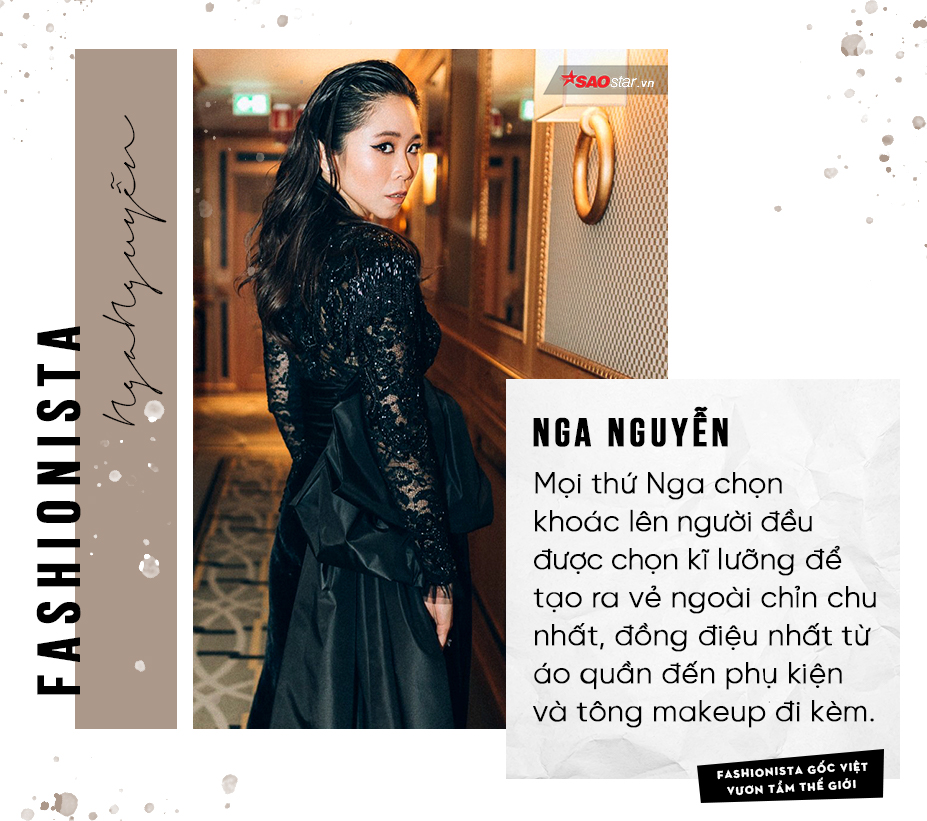 Nguyễn Thị Hồng Nga hay còn được biết với cái tên Nga Nguyễn là một trong những fashion icon gốc Việt thường xuyên ngồi dãy ghế đầu (Front row) của các show thời trang từ nhà mốt lừng danh. Cô còn là bạn thân của Tổng biên tập quyền lực của tạp chí Vougue Nhật Bản - Anna Dello Russo.