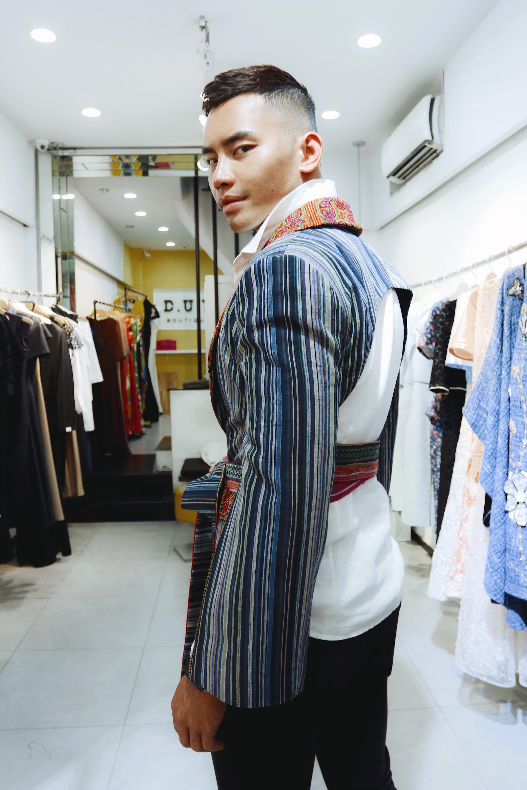 Mạnh Khang tâm sự thêm, ở các sự kiện quan trọng tại cuộc thi, anh đều lựa chọn mặc những trang phục có phần đặc biệt từ áo khoác măng tô in hình tranh Đông Hồ, áo dài truyền thống, tới chiếc vest cách tân bằng chất liệu của đồng bào H’Mông.