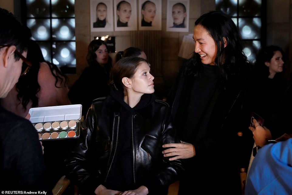 Kaia Gerber ở sau cánh gà trò chuyện cùng với NTK tài năng Alexander Wang.