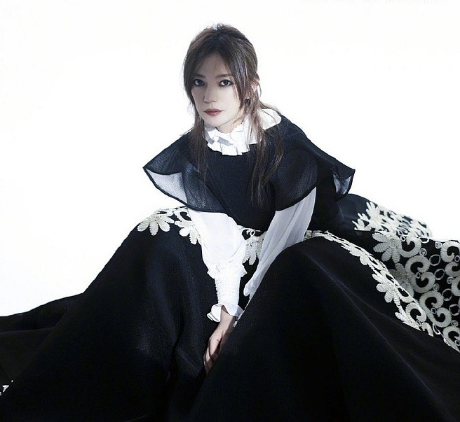Hình ảnh nữ diễn viên Triệu Vy bí ẩn trong chiếc váy của NTK Tuyết Lê. Thiết kế này được làm bởi 18 nghệ nhân hàng đầu Việt Nam với 2.160 giờ.