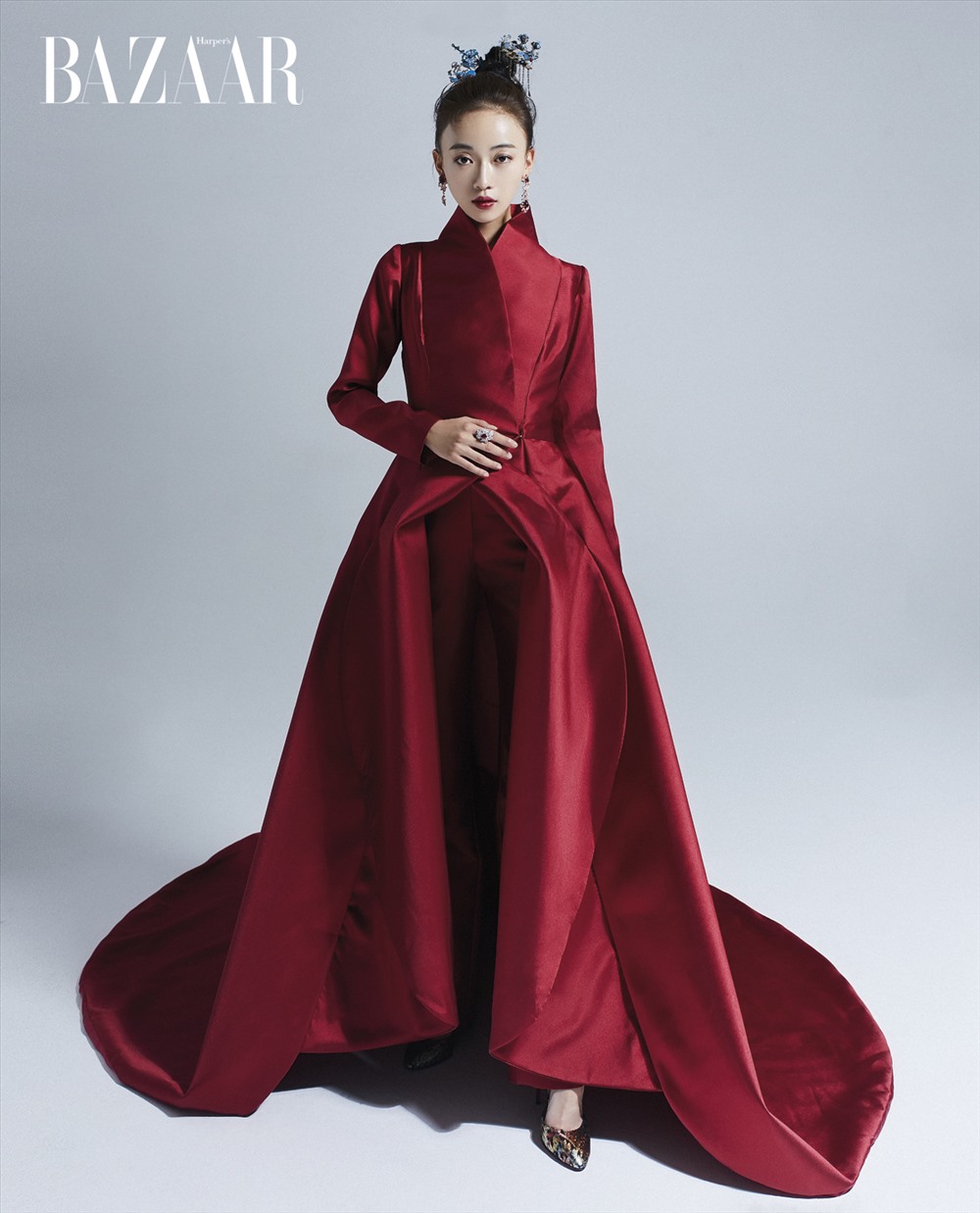 Ngoài Triệu Vy, một thiết kế khác của NTK Tuyết Lê cũng được diễn viên Ngô Cẩn Ngôn - ngôi sao mới của làng Hoa Ngữ khoác lên mình vô cùng xinh đẹp và quyến rũ trong chiếc váy đỏ.