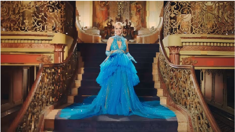 Thiết kế đầm xanh được thực hiện bởi Công Trí chính là trang phục chủ đạo của Katy Perry trong MV mới “Final Fantasy”. Đường khoét lưng sâu, xẻ ngực và cắt bên hông tinh tế giúp Katy Perry vừa phô diễn tấm lưng trần quyến rũ lại tôn được các “điểm vàng” cơ thể với sắc xanh bắt mắt còn khiến giới mộ điệu liên tưởng tới chiếc đầm xanh kinh điển của nàng Lọ Lem trong ‘Cinderella”
