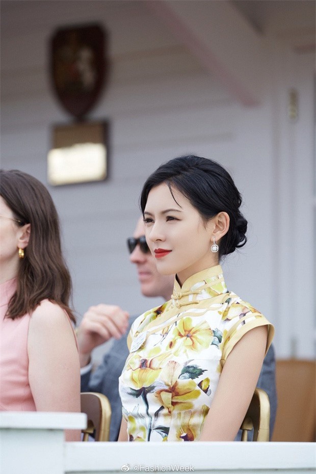 Trước đó không lâu, người đẹp xứ Trung toả sáng ngút ngàn với khí chất và vẻ đẹp xuất sắc trong bộ sườn xám khi ngồi trong một show thời trang tại PFW