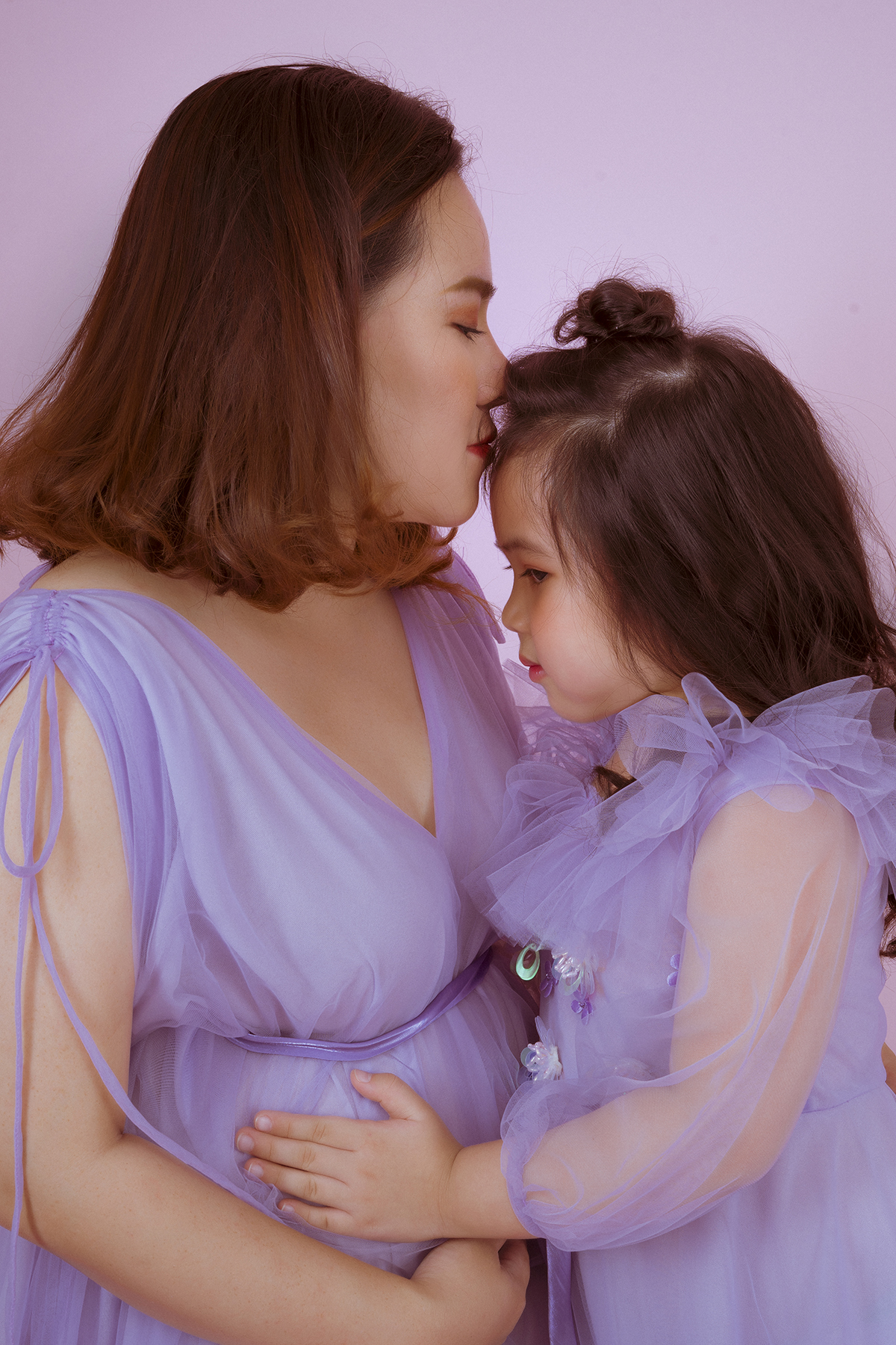 Trong bộ hình cô bé chụp với mẹ đang ở tháng cuối thai kì