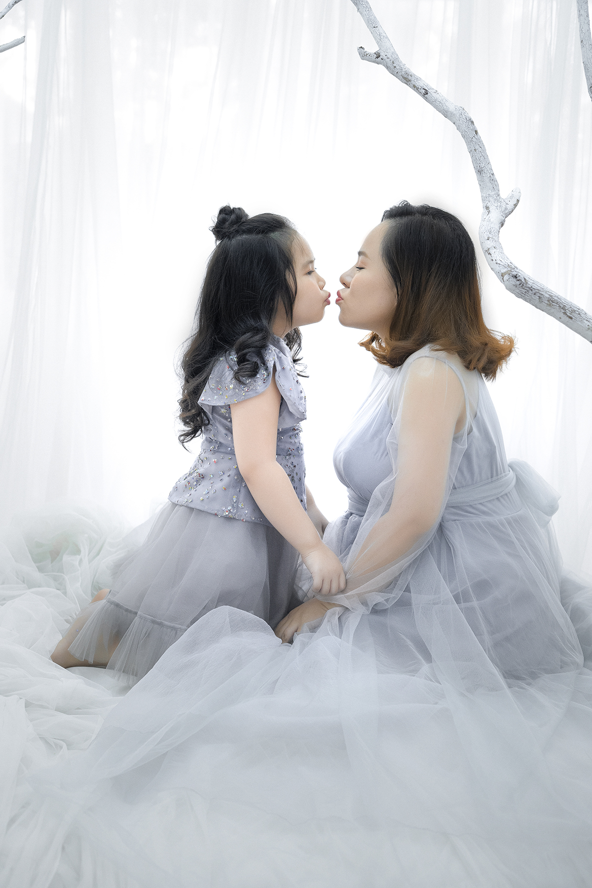 Trong buổi chụp hình mới nhất, Hà Vy diện những mẫu thiết kế bay bổng tạo dáng bên cạnh mẹ ruột. Sự kết hợp hài hòa giữa tình mẫu tử và thời trang khiến bộ hình càng thêm cuốn hút và níu mắt người ngắm.