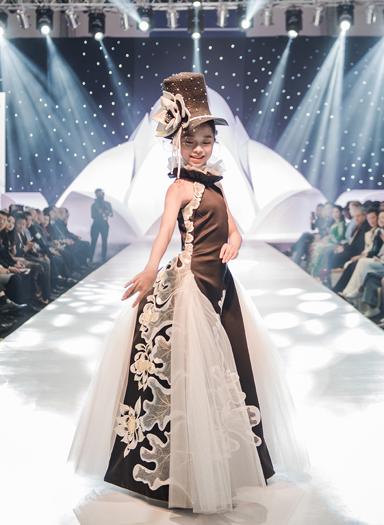 Hình ảnh mẫu nhí sải bước điêu luyện khiến khán giả trầm trồ