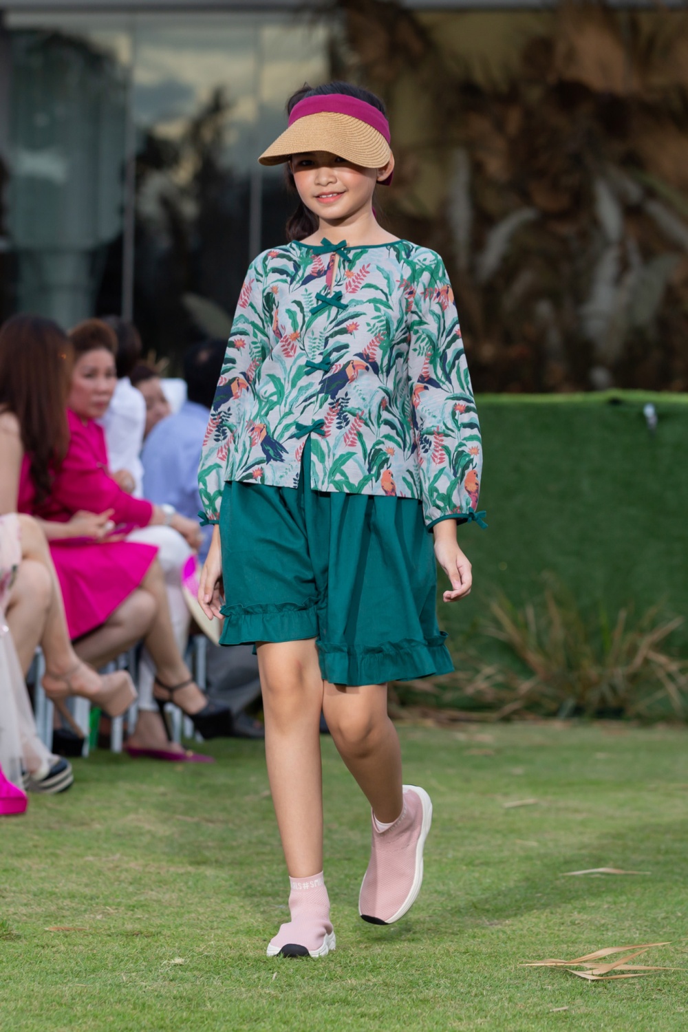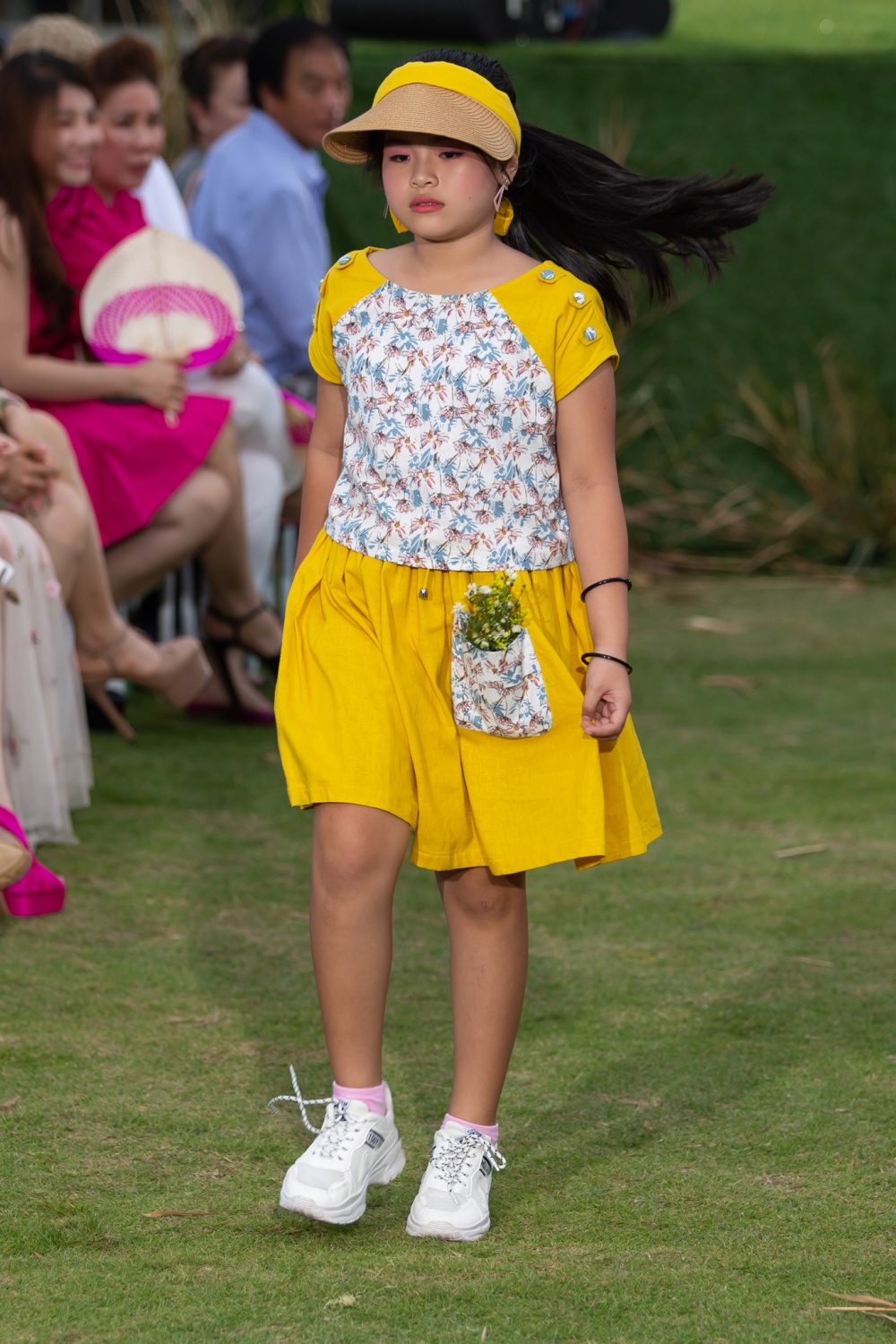 NTK đã ưu tiên lựa chọn chất liệu thiên nhiên: linen, cotton để trẻ có thể thoải mái hoạt động mà không lo ngại thời tiết nóng bức, với tông màu chủ đạo là vàng rực rỡ, xanh da trời mát mẻ.