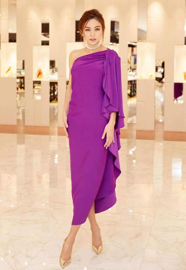 Diện chiếc váy tím - gam màu hot nhất 2018 của NTK Đỗ Mạnh Cường, những tưởng Mâu Thủy sẽ trở nên cực kỳ rạng rỡ. Ấy thế mà, người đẹp lại vô tình tự “cộng thêm tuổi” cho bản thân với kiểu tóc lõa xõa cùng vòng cổ ngọc trai. Không những làm vẻ ngoài của mình trông “già chát”, món phụ kiện này còn khiến phần cổ cô nàng trông ngắn thấy rõ.